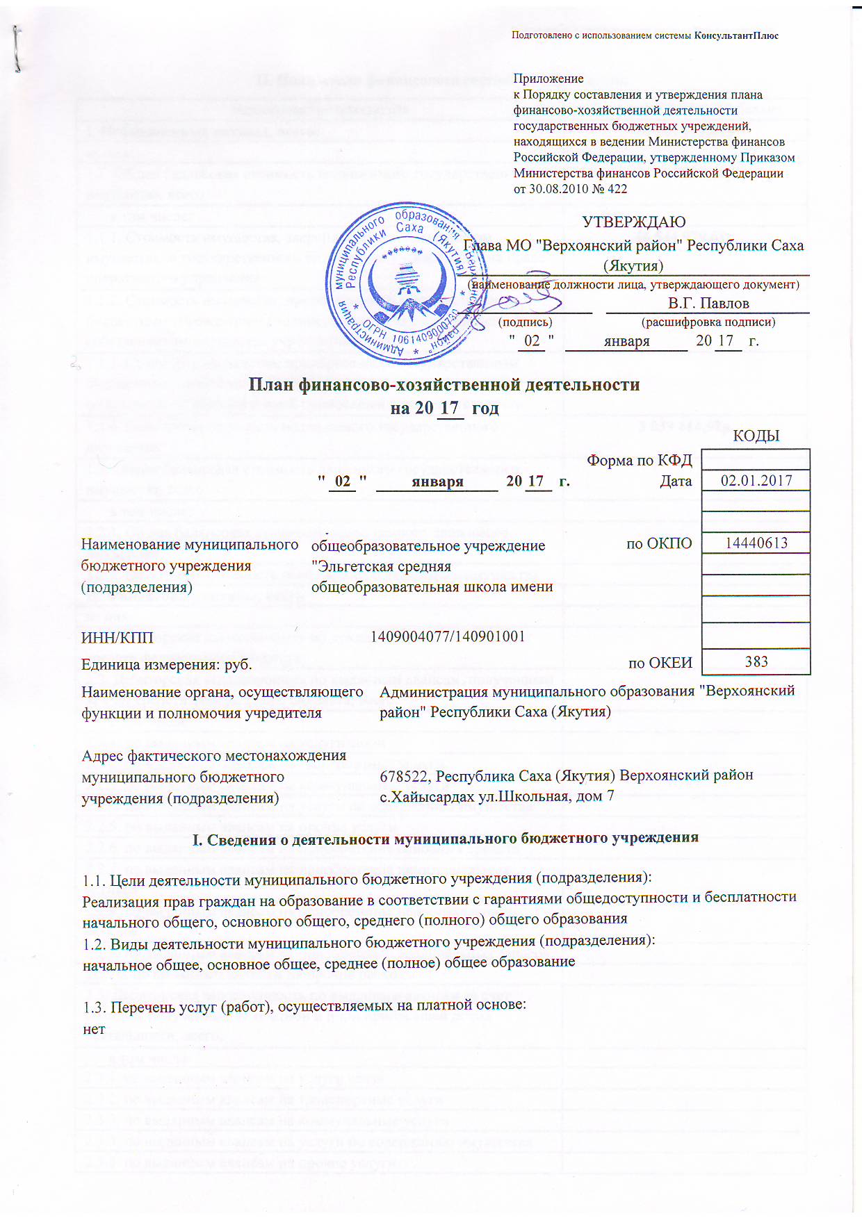 Приветствую Вас Гость | RSS | Главная | План финансово-хозяйственной деятельности, утвержденный в установленном законодательством РФ | Регистрация | Вход